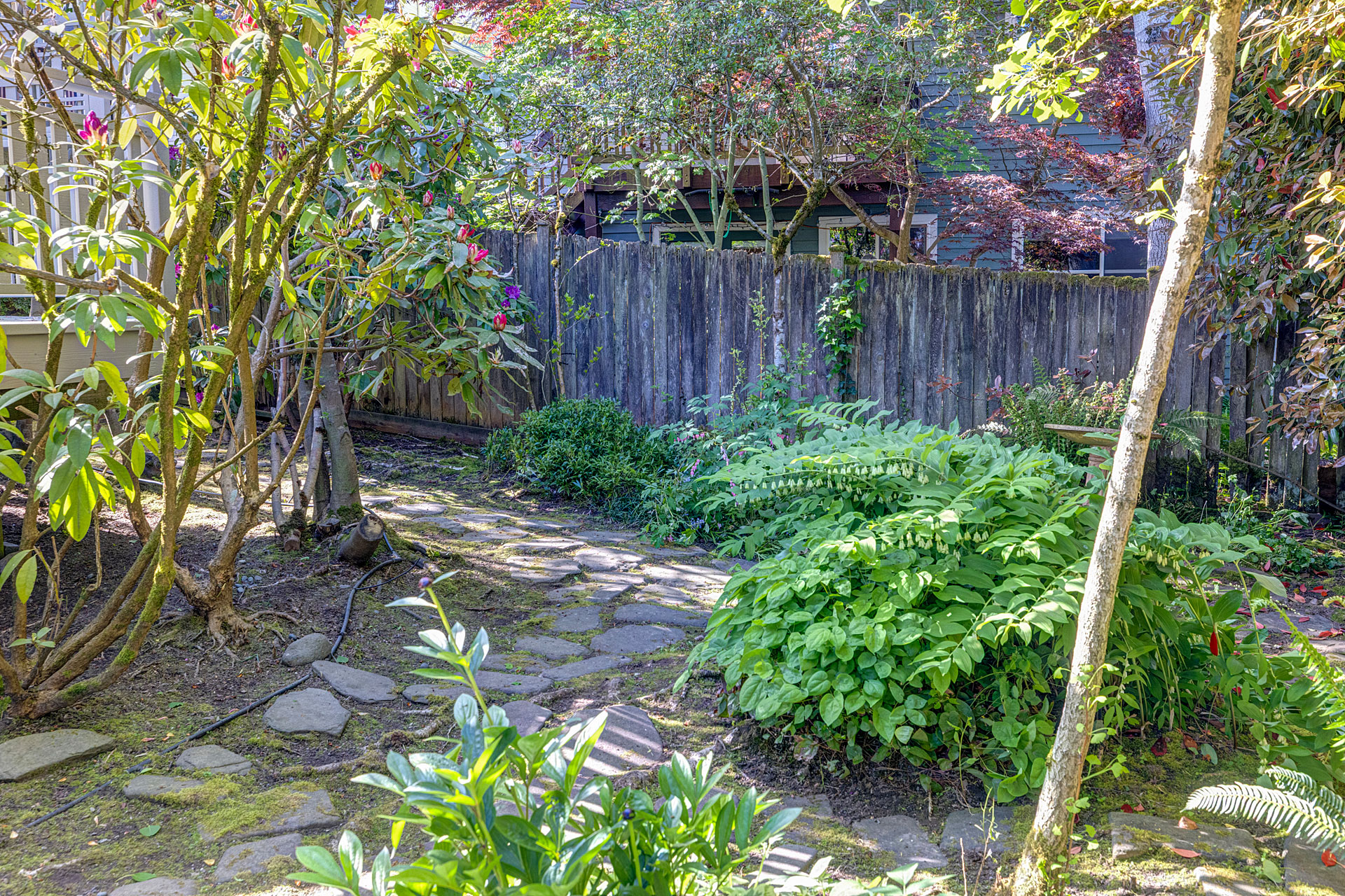 This charming 1905 Craftsman cottage has lots of light and is surrounded by a lush and secluded yard. The main floor includes the living room (with a gas fireplace), dining room, kitchen with an eating nook, a den which can be used as a third bedroom or office, and a ¾ bathroom with a washer and dryer. The upstairs includes 2 bedrooms, a full bathroom, and nice territorial views. Plenty of storage and work space in the unfinished basement. Enter through a beautiful garden courtyard and a quaint covered front porch. The house features a large rear deck and an off-street parking space. Quiet, non-thru street gets very little traffic. Fabulous Madrona location, a short walk to shops, restaurants, grocery stores, Madrona Park and the public library.